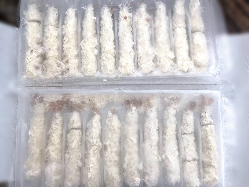 エビフライは、一部が切れ切れに。