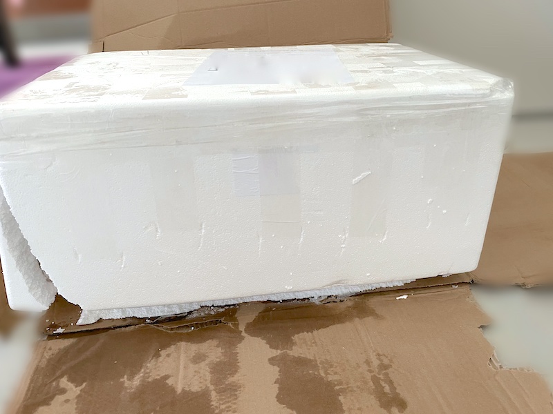 ドライアイスが魚のパッケージに