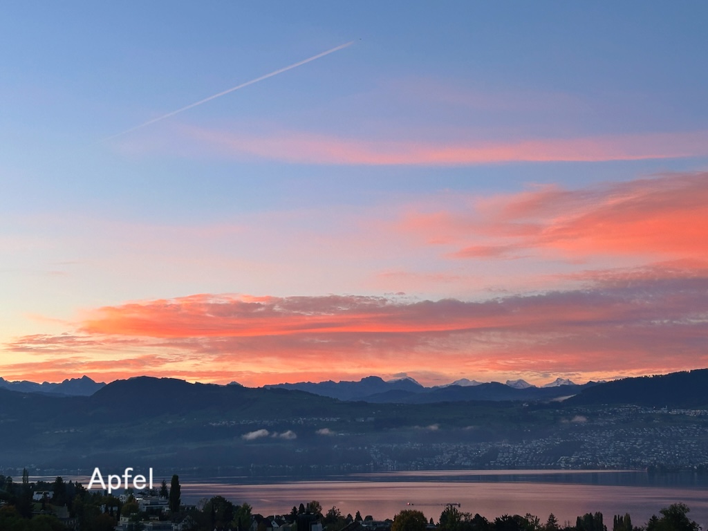 チューリッヒ湖の朝焼けと、