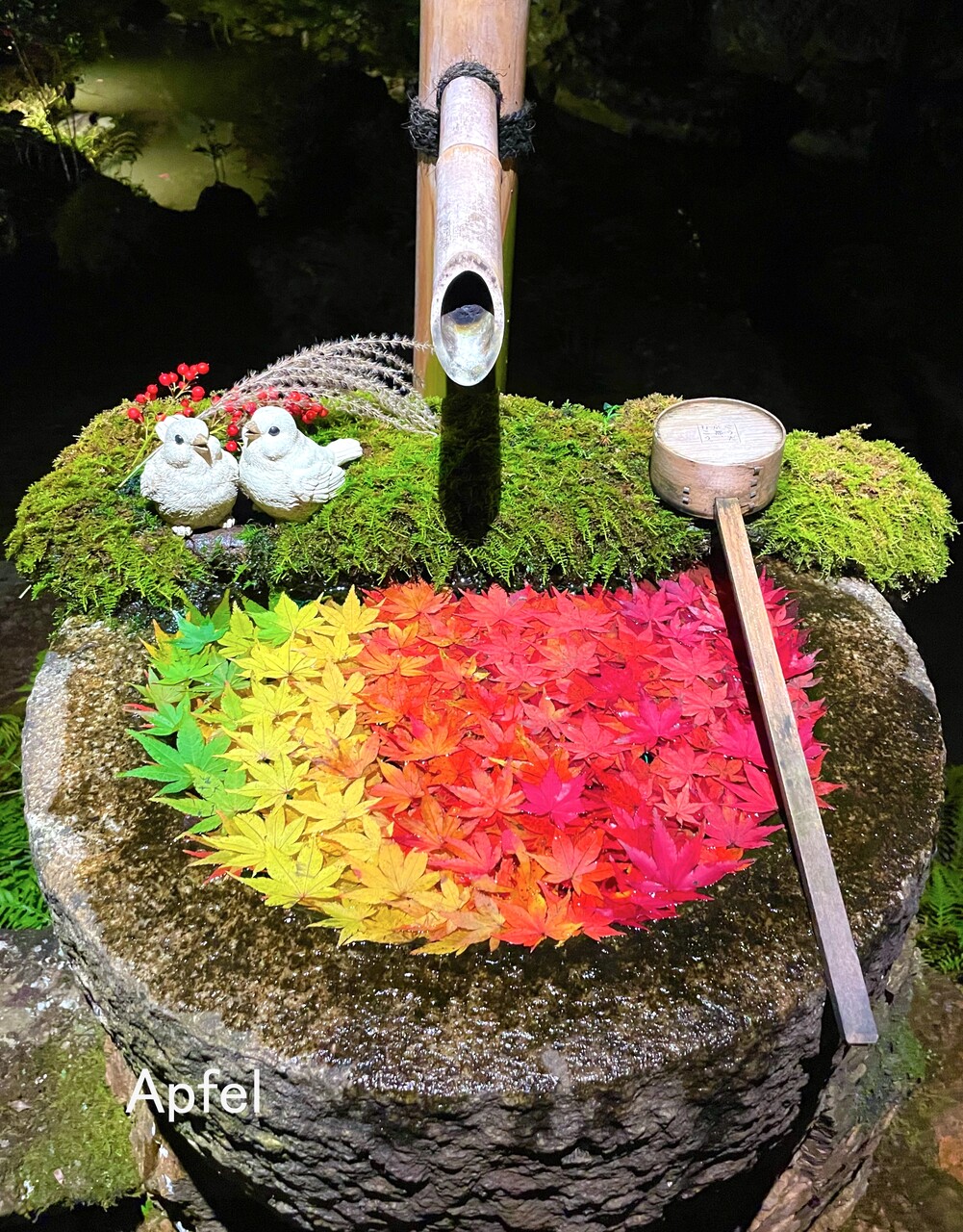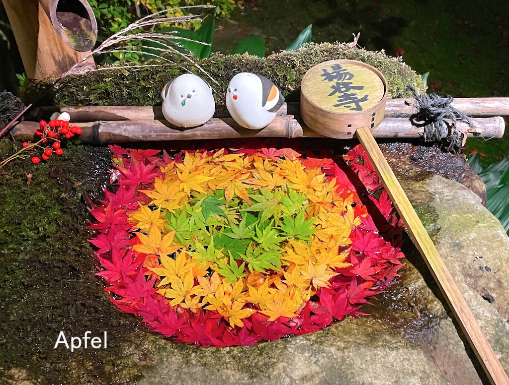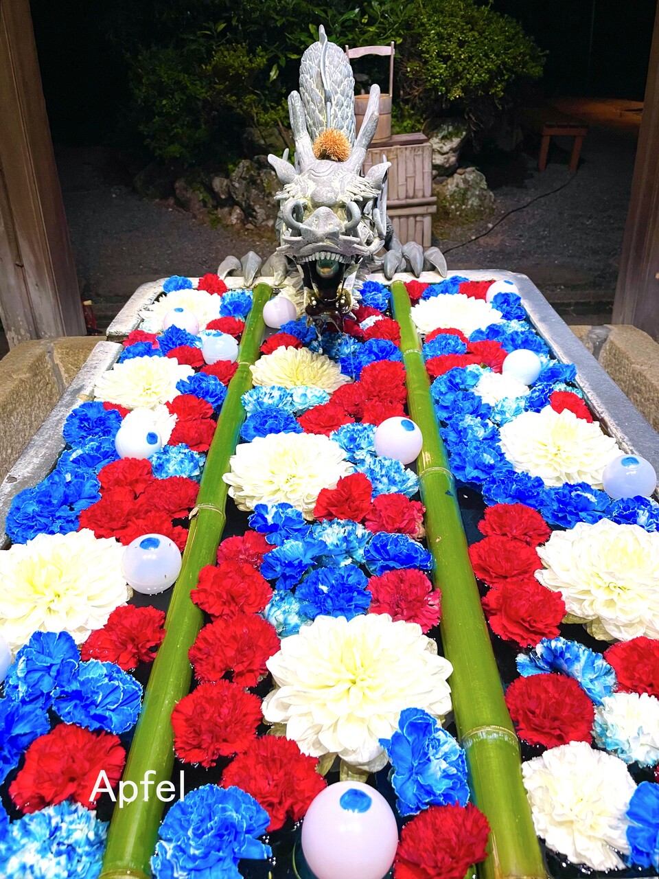 花手水にも「目玉」が浮かんでいました。