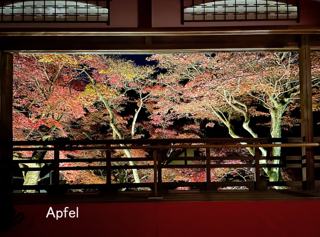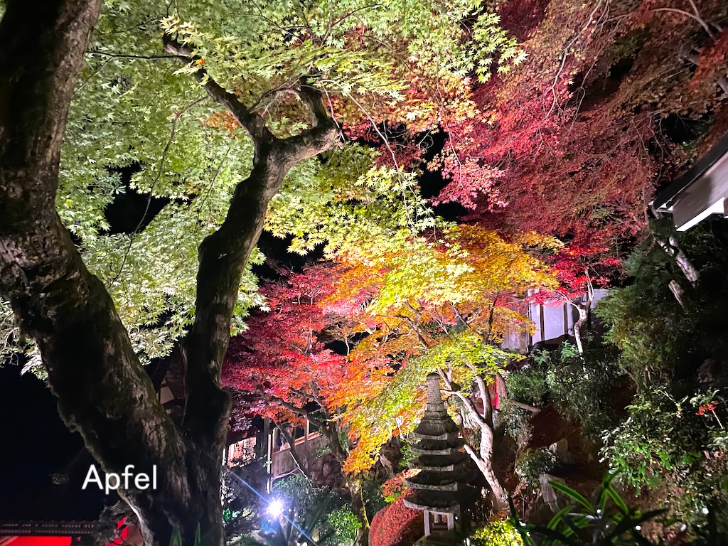 ライトアップされた紅葉の風景は美しく、