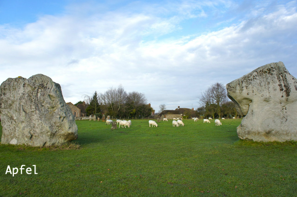 エーヴベリーはストーンヘンジ同様に環状列石の並ぶ遺跡で、