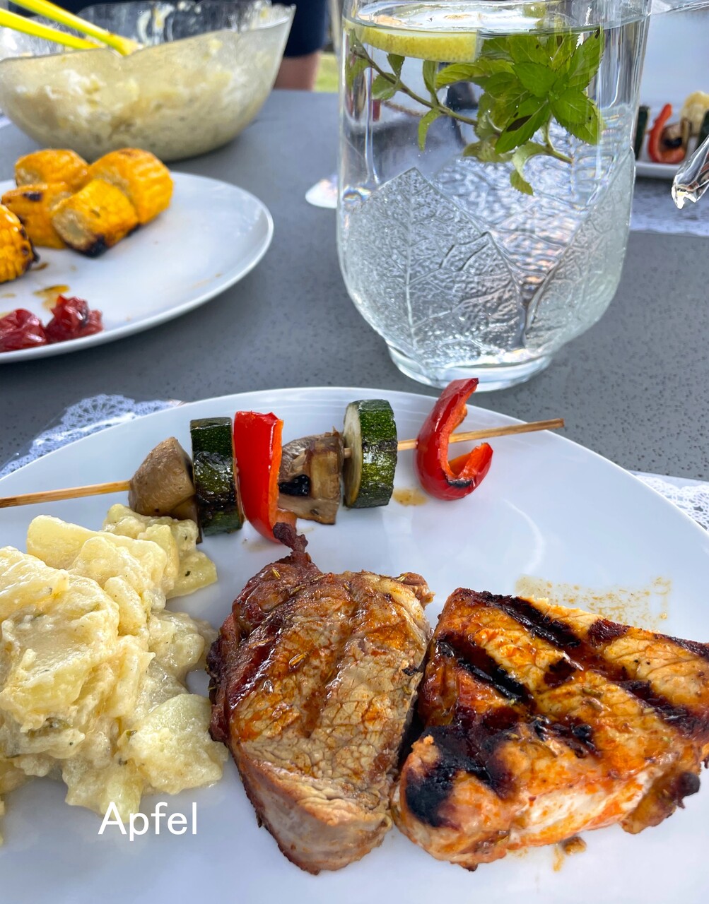 お食事はテラス席で湖を眺めながら…。