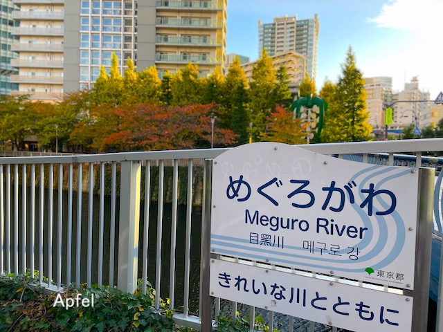 目黒川の桜並木が広がる