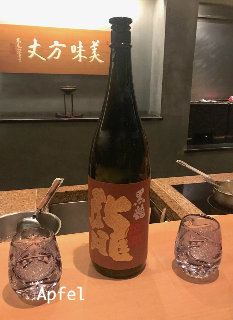 まずは大好きな日本酒、「黒龍」を美しいグラスで。