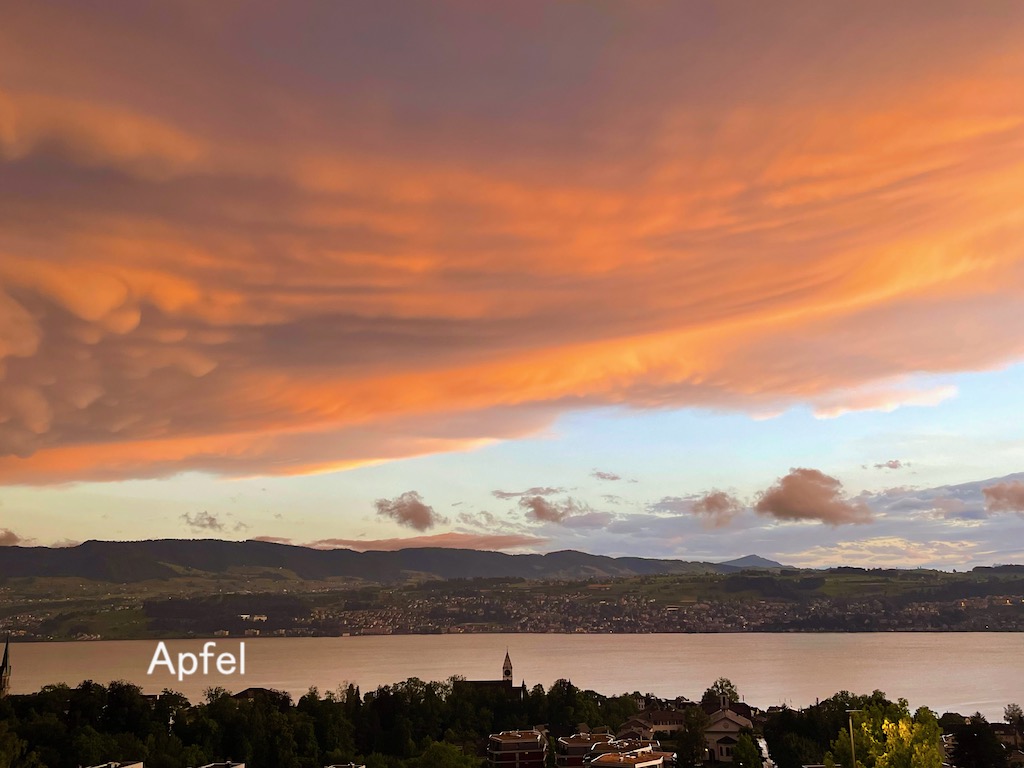 雨上がりのチューリッヒ湖畔の夕暮れです。