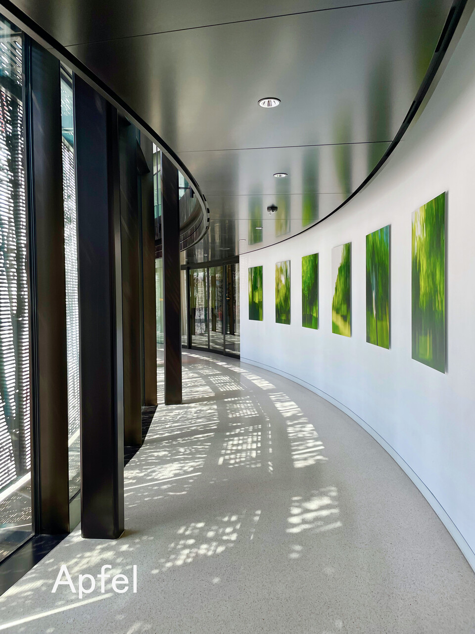 中庭の白いテラスでは、