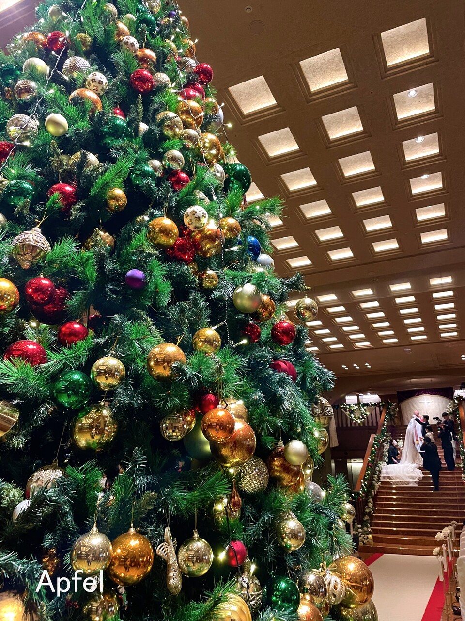 大きなクリスマスツリーが飾られ、