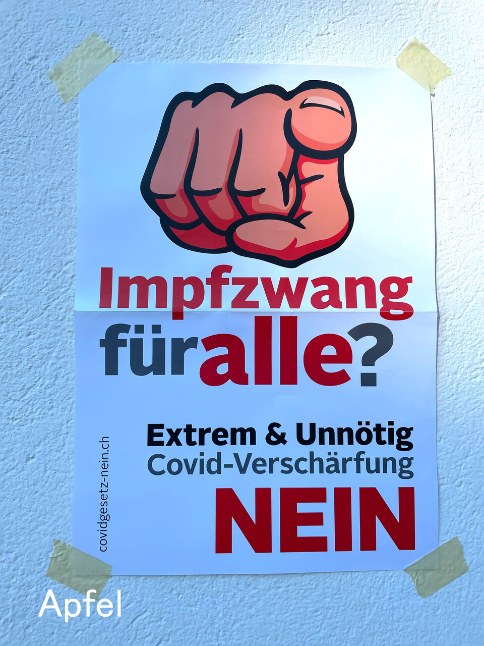 反対派の過激なポスターが貼られていて、