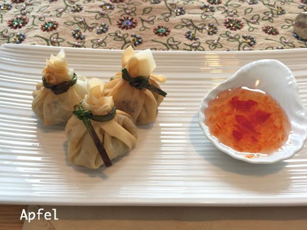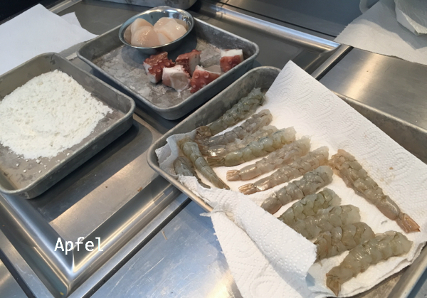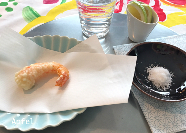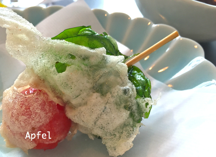 火を通す程度にくぐらせ、ソースをつけていただく、