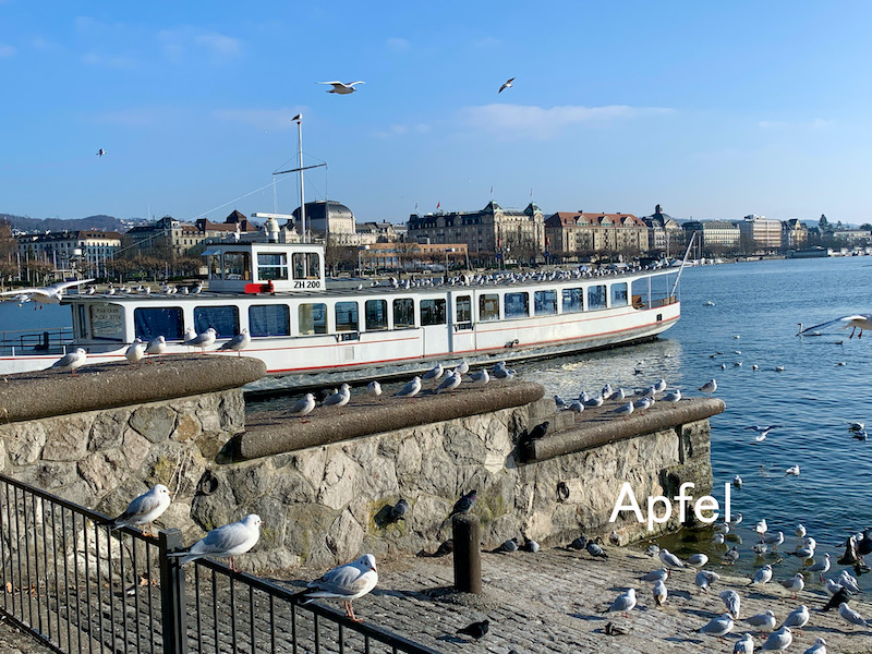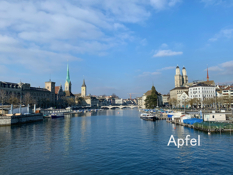 チューリッヒ市内は重たいグレーの空で、