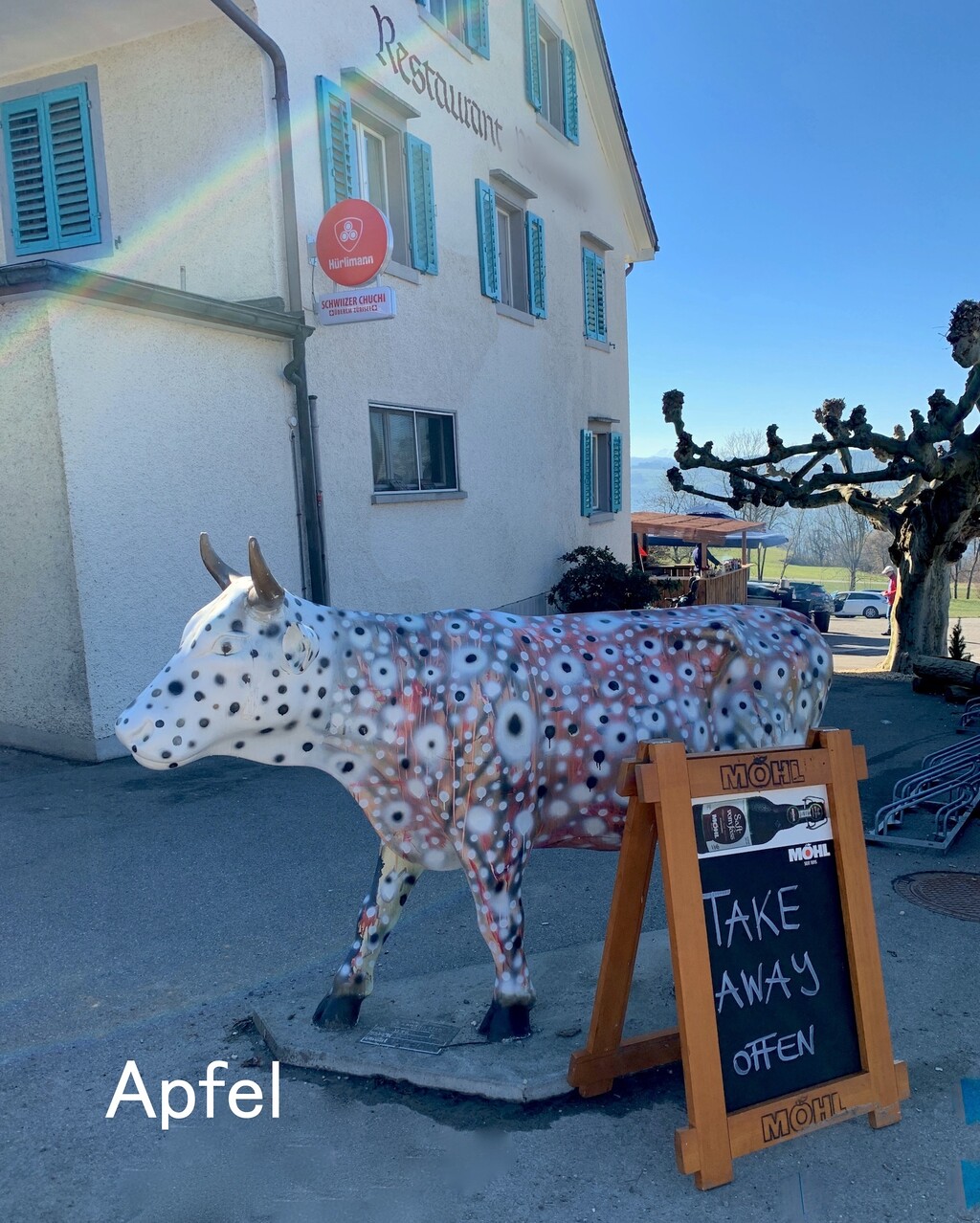 この日は近くのファームの牛が屋外に出て、