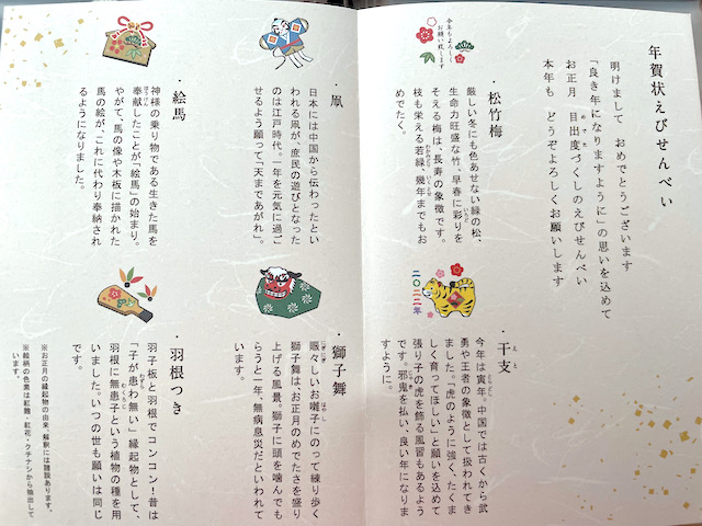見ていて飽きない、美しい年賀状えびせんべい